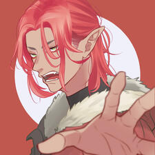 Starting from the top of his head, Tagiru possessed long hair with the longest of his crimson locks reaching down to the nape of his neck. Unlike his previous incarnation, which preferred spiky hair, this one preferred long and straight hair. With the only notable reference to his other self are the two twists with golden hair hair cuffs. On certain occasions he tends to tie his hair up into a man bun that seemed like it was messily done when in reality it took him a bit to get it together. Cast over his aggregate was a variety of delicately tinted skin. The pigmentation like that of one who had constantly bathed in the sun’s glory. Without any blemishes, such a shading was really an indication of a watchful warrior. His elongated pointed dagger-like ears that we're the signature to elves were clearly noticeable as his hair was pulled back to expose it. His comparatively large irises were a bright emerald green hue, not too dissimilar to spring’s renewal. Accompanied by vertical-slit shaped pupils, similar to those of domesticated felines. If one were to peer even further into his almond shaped eyes, it would be possible to see a secondary iris and pupil within the first. The eyebrows are prominent and distinctive, beginning at the brow line near the bridge of the nose and then running up at an angle as they approach the sides of the face. His maw is filled with fangs, incisors, and a series of molars; fitting for an apex predator. He possessed a Greek nose that is defined by its remarkably straight bridge, which is free from curves and bumps. His facial features had no blemishes or scars. He also possessed a round face.Tagiru stands at a height of six feet three inches, tipping the scales at two-hundred and eighty pounds. Tall and lanky thanks to being of a mesomorphic build, but his warrior body type made up for it: lean, defined, and proportionate looking packed with strength and versatility. Each muscle had gained its right to be upon his framework, such as his shredded six-pack abs, incredible chest definition, and slim waist.Personality